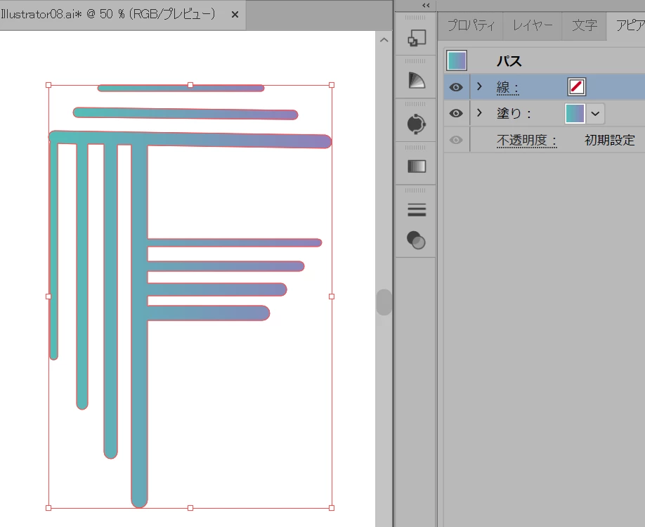 ことはじめ口座での第8回文字をデザインしてみようで、ラスタライズしたものにグラデーションをかけるというので、選択してスポイトツールでやるのですが、いくらやってもできません。