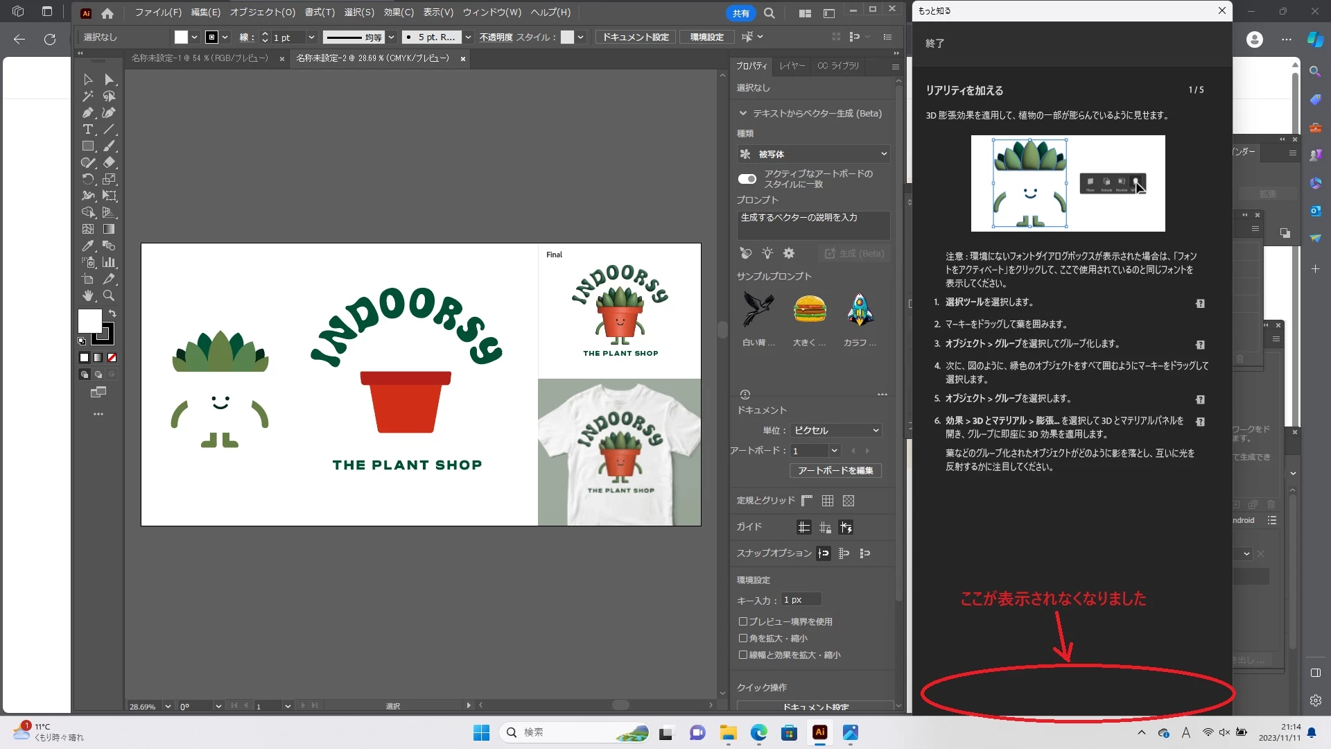 チュートリアルパネルが伸びすぎて下が画面外にいっちゃったんですね。
