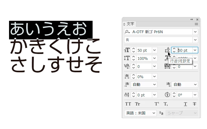 ・文字パネルで、テキスト全体の行送り値を「自動」に