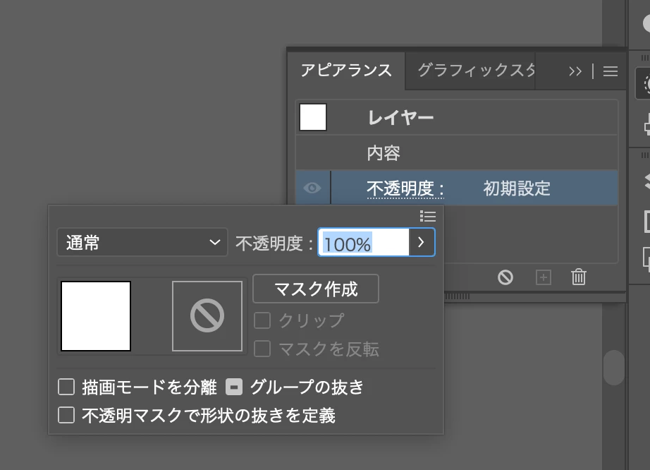レイヤー全体にアピアランス(効果・不透明度)を設定できるので、