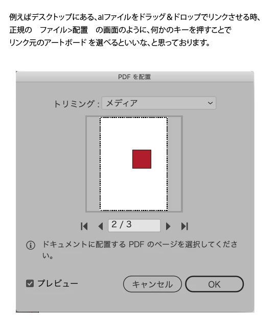 ドラッグ&ドロップでaiデータをリンクさせる時アートボード を選びたい
