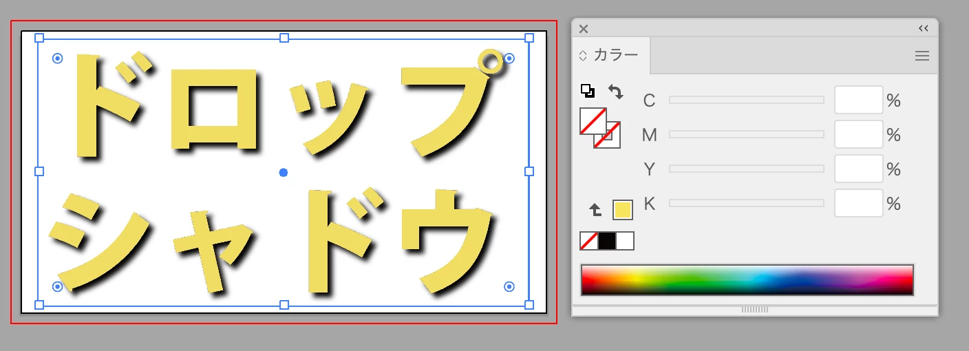 同じようにやってみましたがドロップシャドウ部分の表示は切れて見えますね。データがないわけではなく表示エリアがアウトライン化した文字オブジェクトに合わせて生成されているので、その表示エリアのサイズ指定が広ければ表示されると思います。