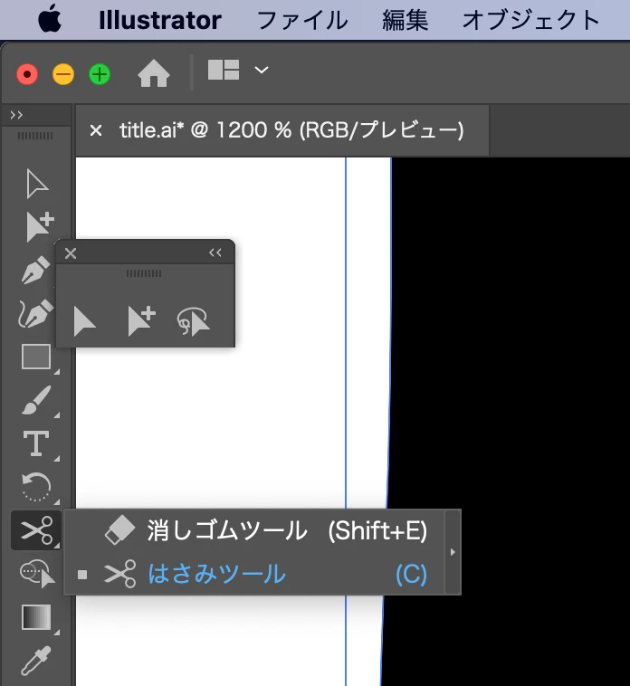 こちらの記事のように、ナイフツールを使ってパスを切りたいのですが、消しゴムツールやハサミツールがある場所を長押ししても、ナイフツールが出てきません。