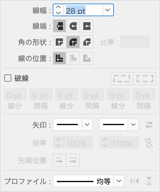 なお、「線」を追加した場合は「線」パネルの「角の形状」を「ラウンド結合」に設定します。
