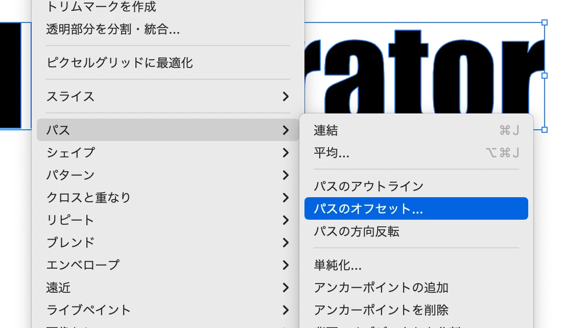 1.テキストをアウトライン化→パスのオフセットを実行
