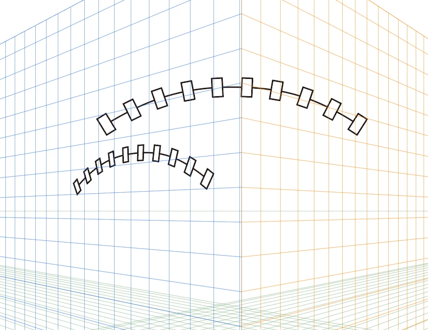 直線上に配置であればこの程度の手作業は可能なのですが、曲線(や螺旋)に配置となると流石に無理があるため自動化の方法を探しています。スクリプトは未経験ですがヒントがあれば学習して取り入れたいです。