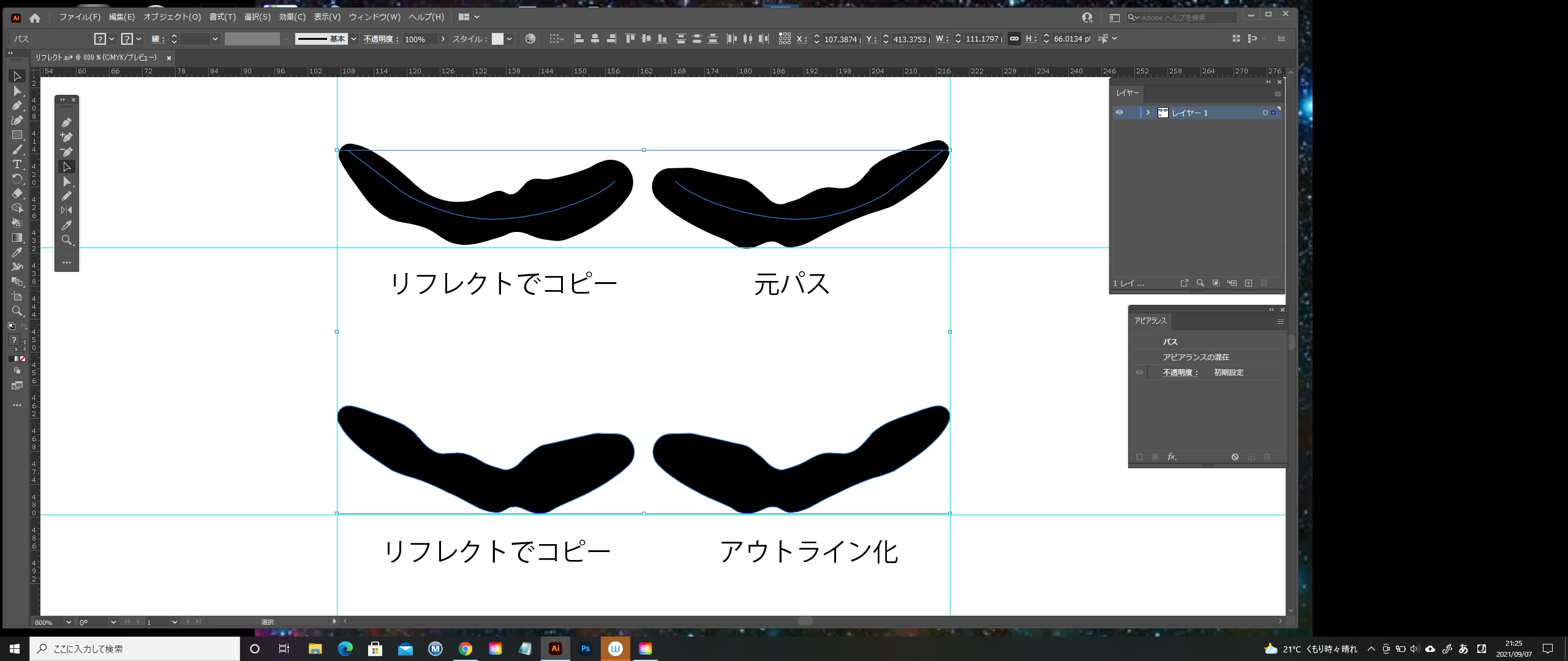 最近、パスをリフレクトツールで反転コピーさせると形状が変化していることに気づきました。