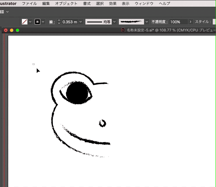 線は線幅ツールでいじったもので、アウトライン化したものは対称形になっています。