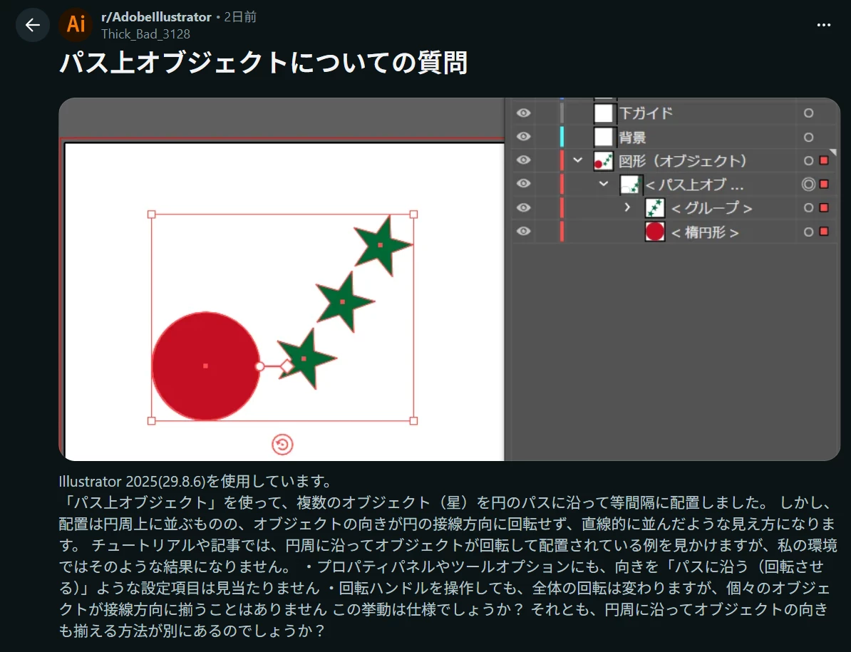 r24919546jrdwKnown ParticipantForum|Forum|1 day agoApril 20, 2026AnsweredパスオブジェクトForum|Forum|1 day agoApril 20, 20263 replies59 views[Illustratorフォーラムへ移動しました:モデレーター]