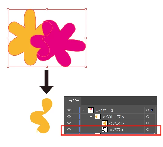 パスファインダー「切り抜き」使用後のカットパスレイヤーを削除する