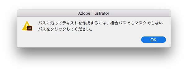 たぶんおそらく以下のダイアログが出たのだと思いますが、書かれているままです。パス上の文字は複合パスやクリッピングマスクには適用できません。