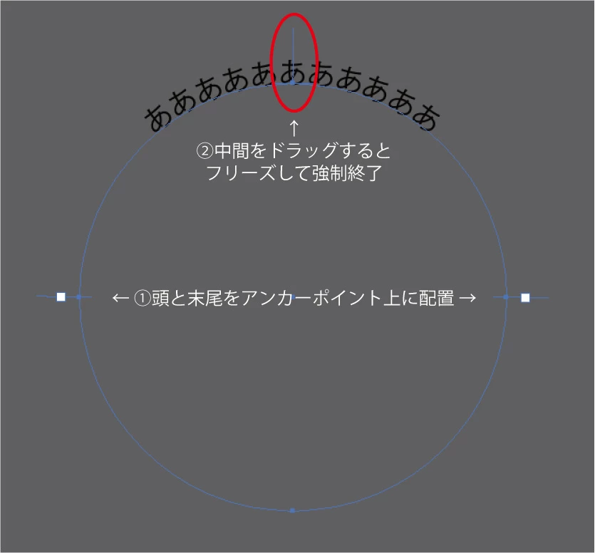 ①円形のパス(正円or楕円)にパス上文字ツールを使用