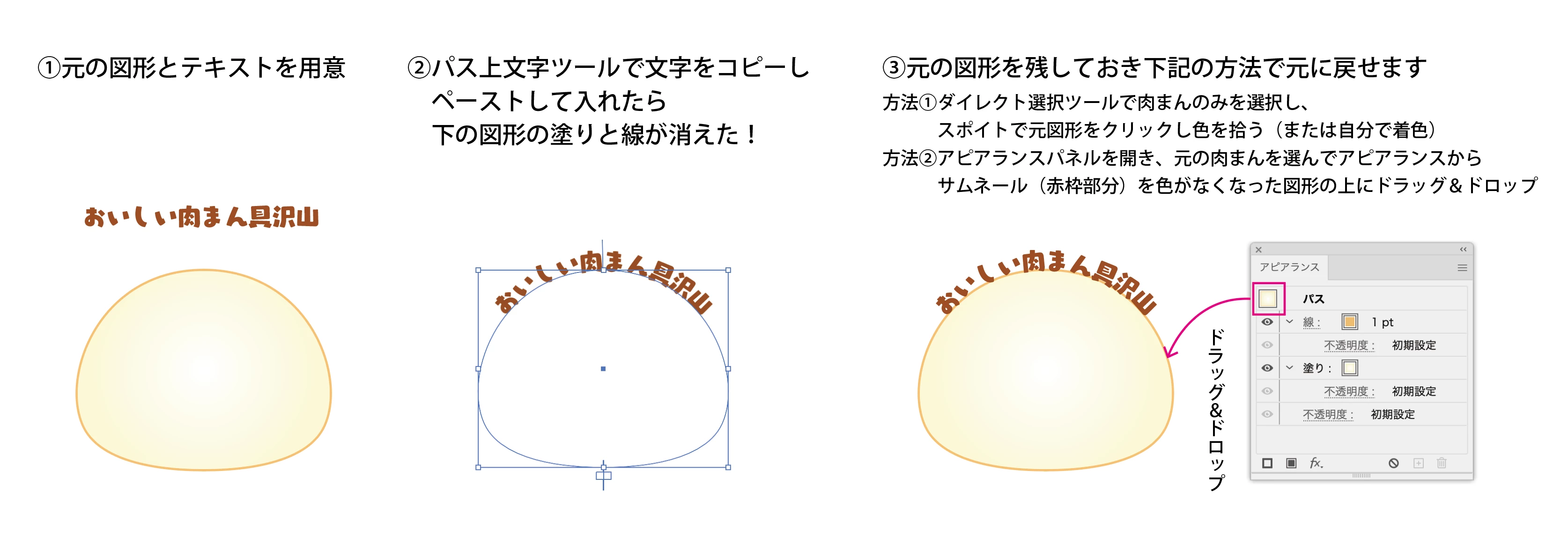 パス上文字ツール使用後に元の閉じパス自体に色を塗る方法は