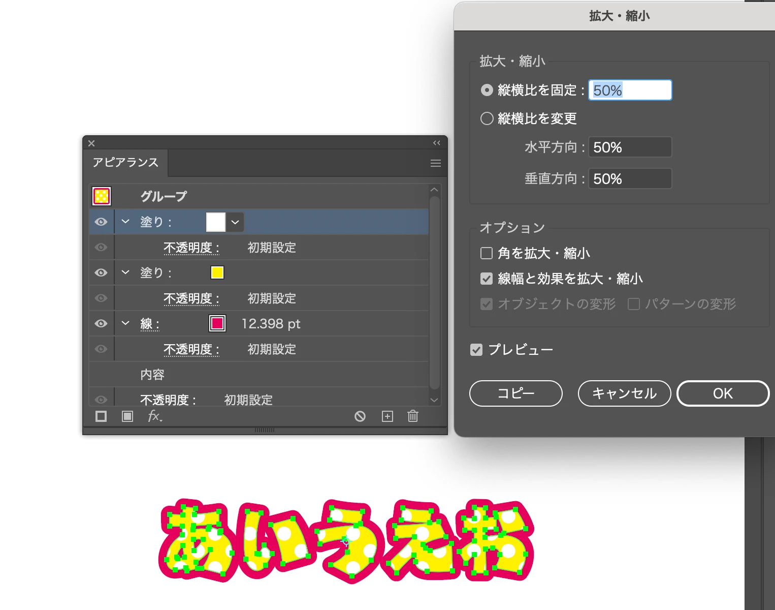 パターンだけを変形したいのに、「オブジェクトの変形」チェックボタンを外せない。