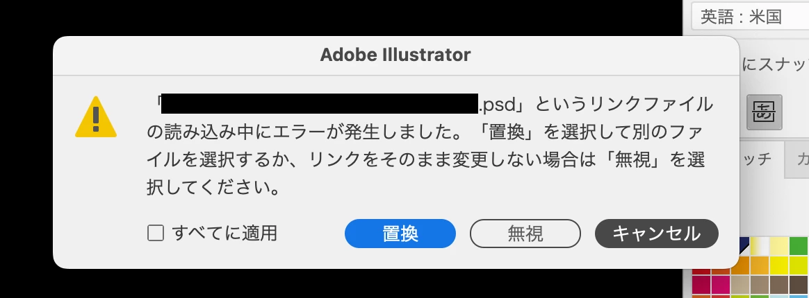 2. 上記でリンク切れしていると言われた画像がなぜかアートボード中央に表示される
