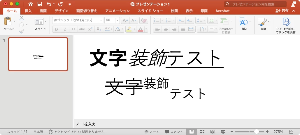 下線、打ち消し線、上付き文字、下付き文字は生かせます。