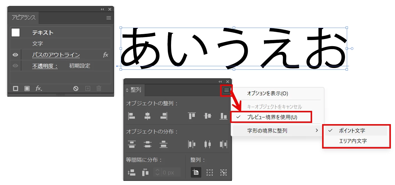 フォントをオブジェクトのアウトラインしてもバウンディングボックスが狭まらない