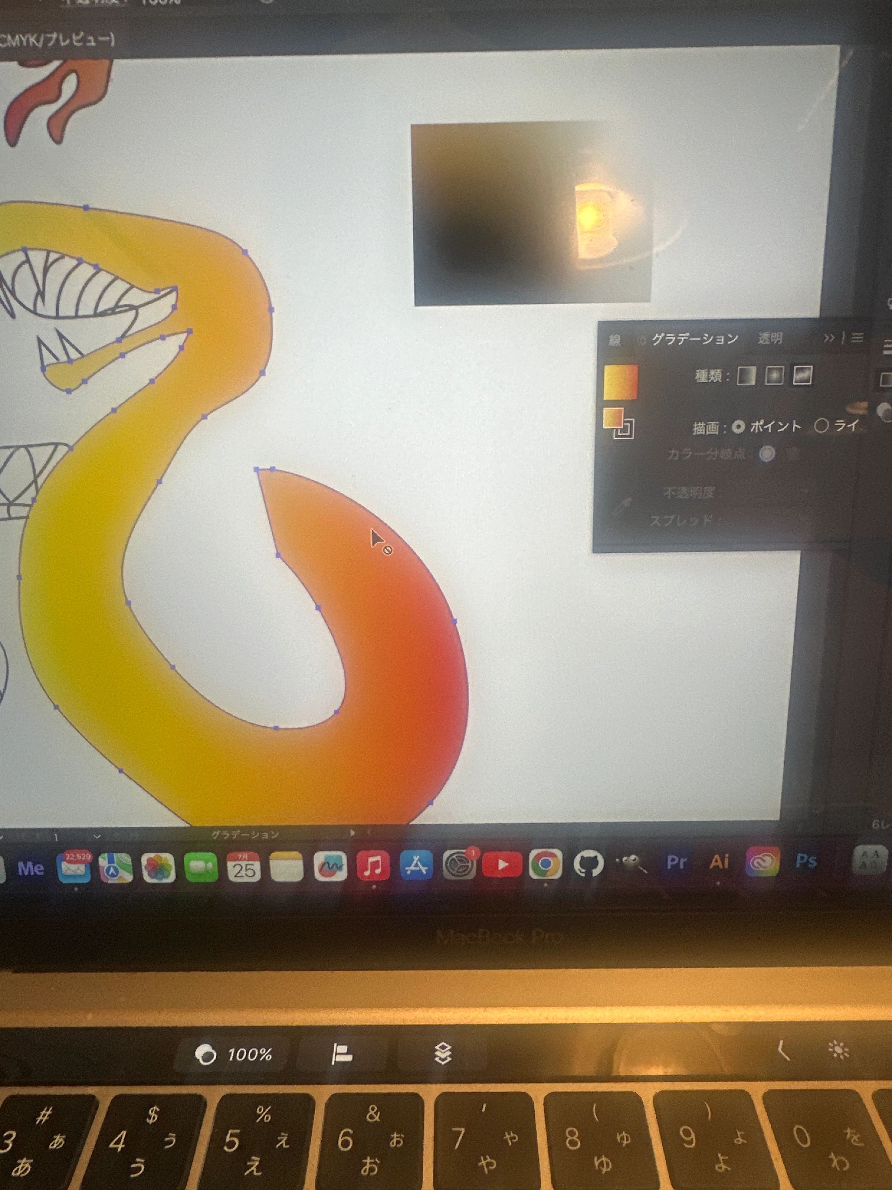 初心者で教えて欲しいのですが、蛇のような形のものにフリーグラデーションをつけたいのですがなぜか使えません。なぜかわかる方いたら教えてほしいです!