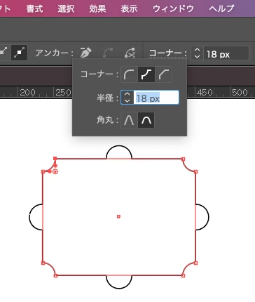 形状に変換 > 楕円形: 「値を指定」で、ここは直径なのでコーナー(半径)の倍を入力。