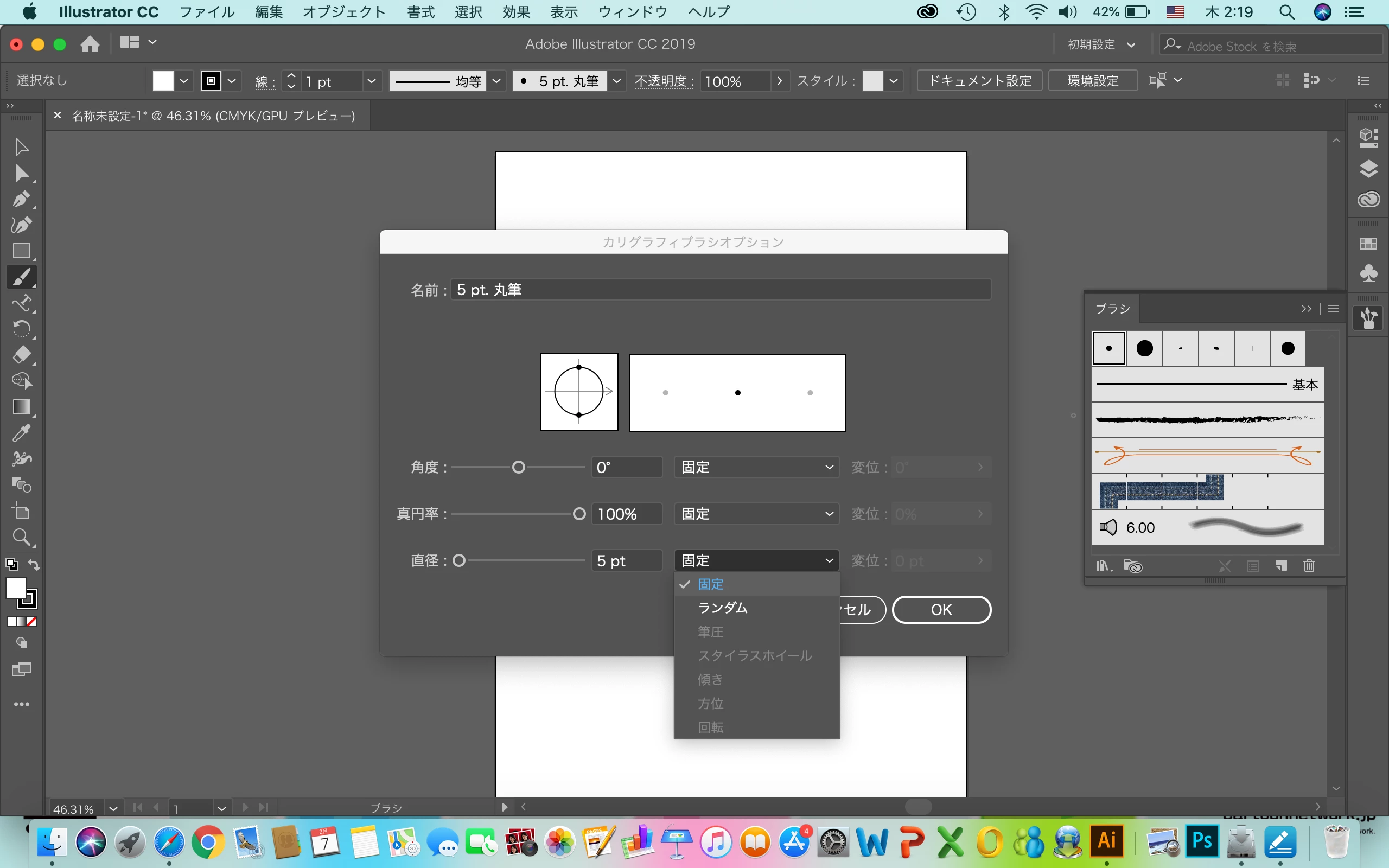 ただいまクリエイティブクラウドのillustratorを使用しています。HUIONのペンタブ(H950P)でブラシツールを使用しているのですが、なぜかカリグラフィオプションで「筆圧」の選択ができません。ペンタブの不備なのかドライバなのかOSの問題なのか判らず困っています。試しにフォトショップのブラシツールも使用して見ましたがきちんと筆圧を感知して描画することができました。なのでイラレの設定の問題だと思うのですが。