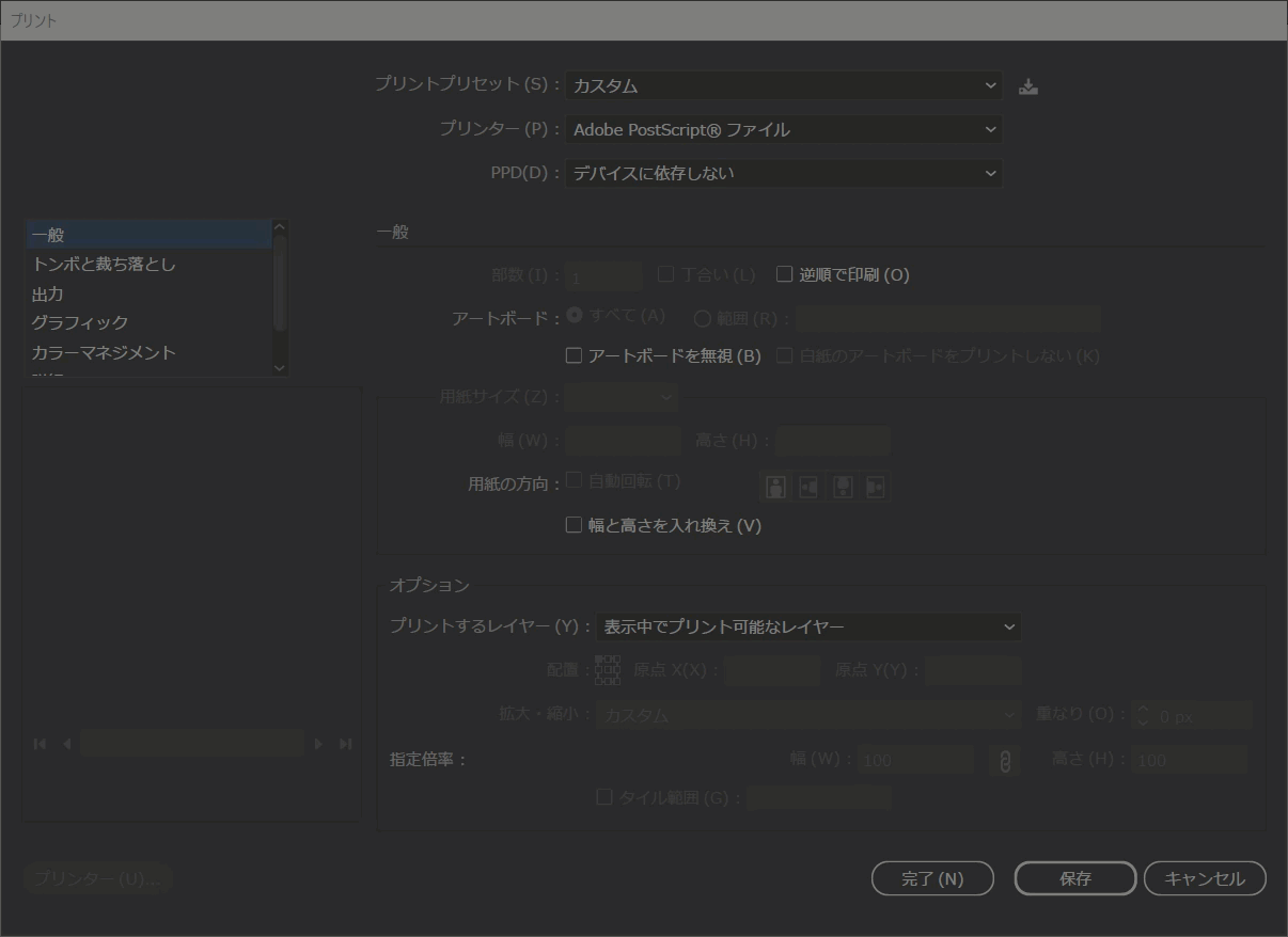 illustrator2023で、[ファイル]-[プリント]を押しても