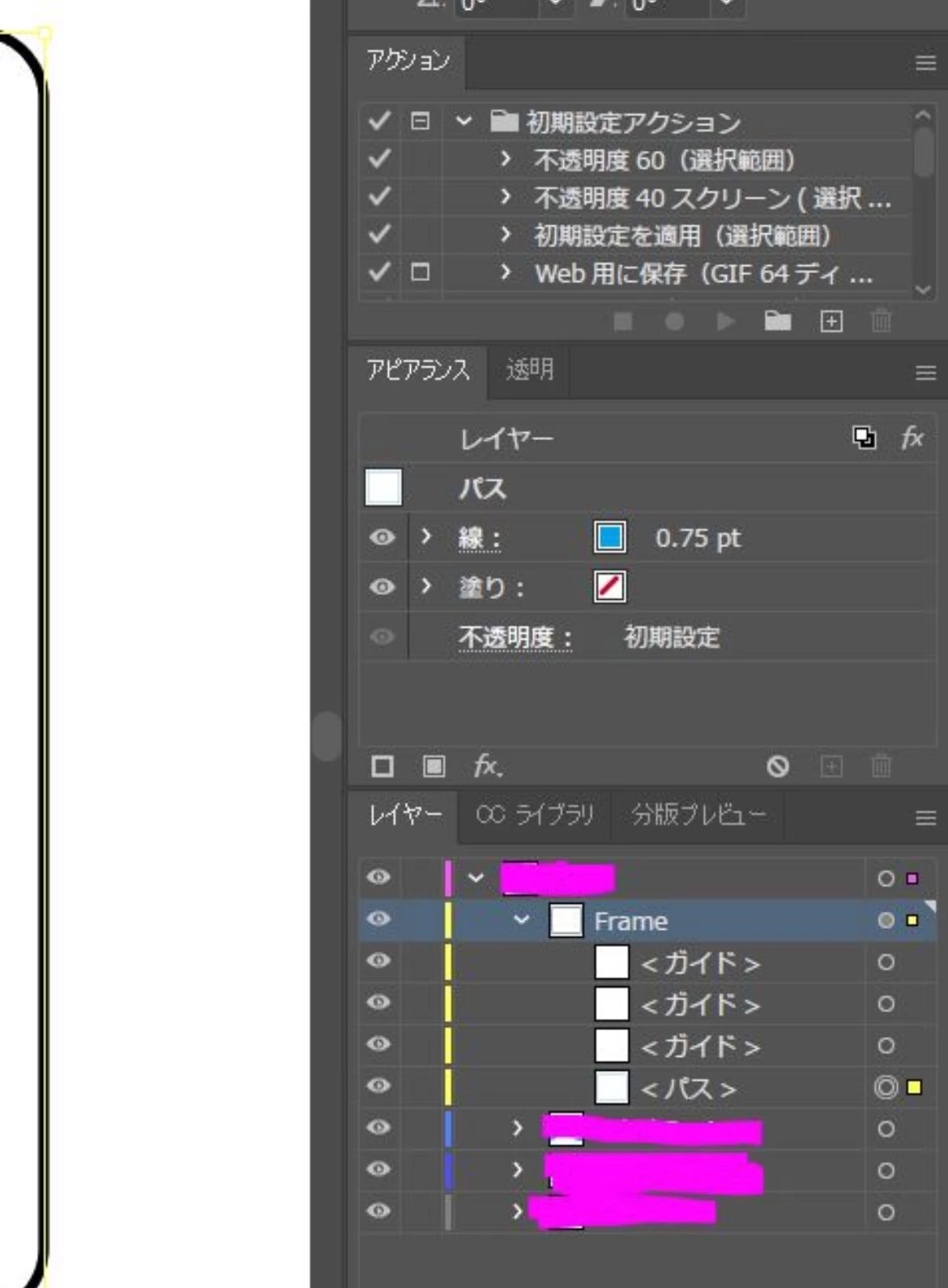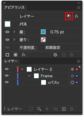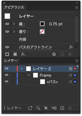 ・グループ化されていない四角形の線が黒、塗りが無しのオブジェクト。