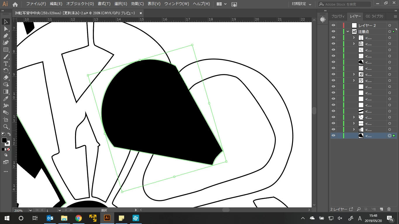 レイヤーでも確認し、最背面(レイヤーの一番下)に配置されてますがやはり最前面になってしまいます。