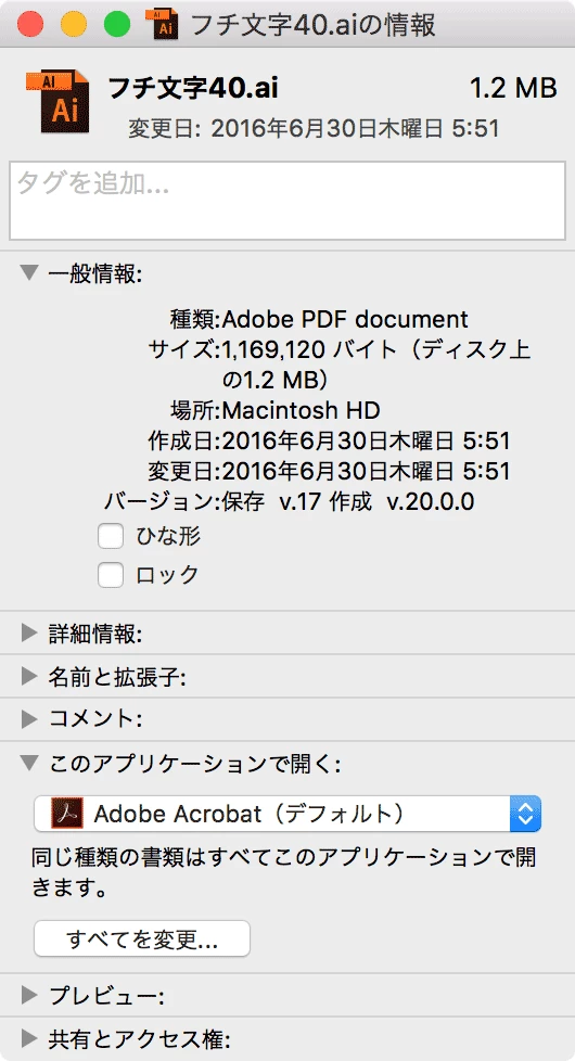 また、dropboxにaiデータを入れて、別の場所の他のmacで開いてみると同様にpdfデータになっています。