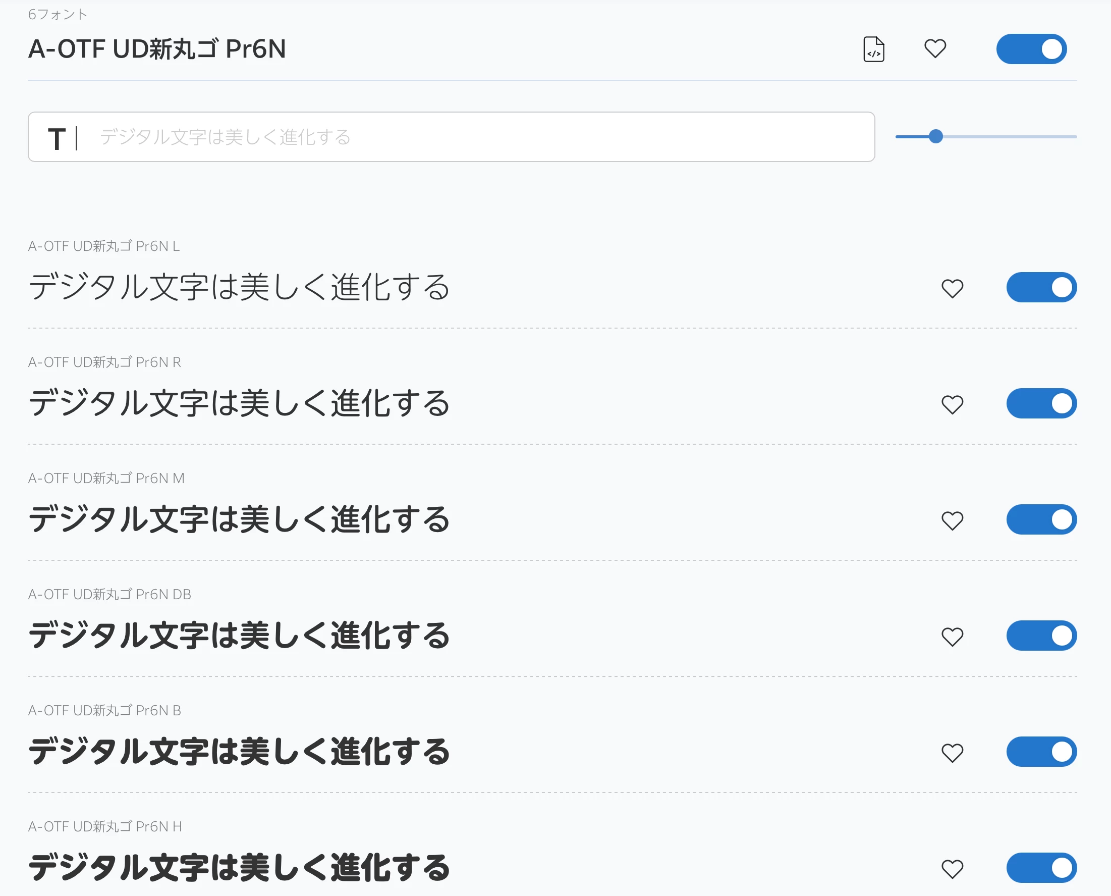 モリサワフォントからA-OTF UD新丸ゴ Pr6Nのシリーズ、6フォント分をアクティベートしましたが反映されません。