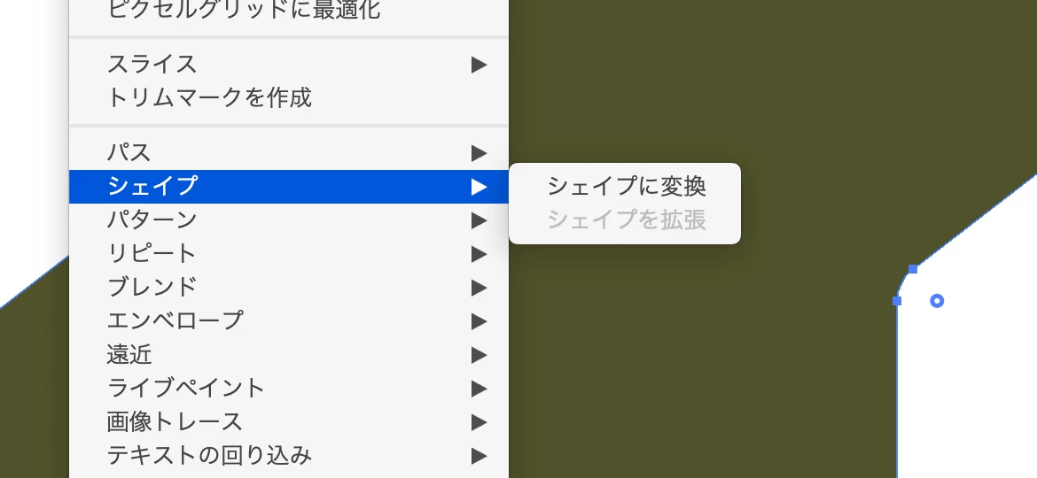 「ペンツールなどで描いたパスオブジェクト」→「シェイプを拡張」が表示されない
