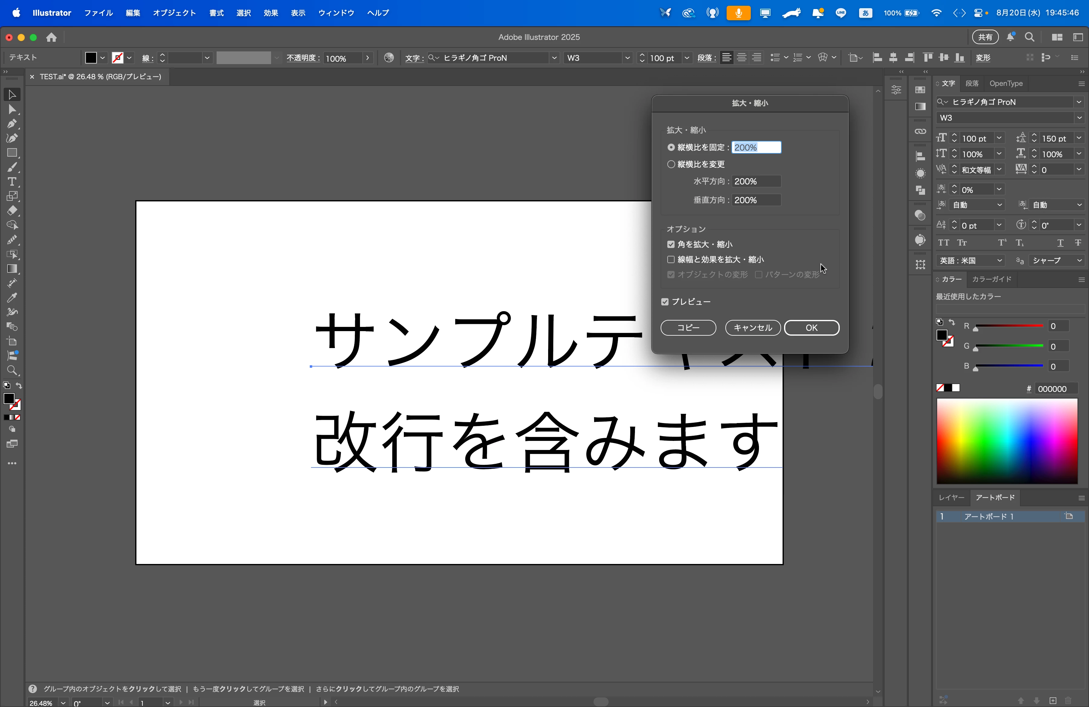 ④アンドゥ(Command + Z)で、いったん拡大を取り消します。