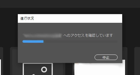 添付画像のように「〇〇(画像の保存先フォルダや画像名※現在は入れない状態)へのアクセスを確認しています」という状態のまま、ブルーのバーは動くのですが、右端まで行くとまた同じような表示が繰り返されて、20分ほど待っても開くことはありませんでした。