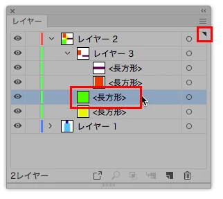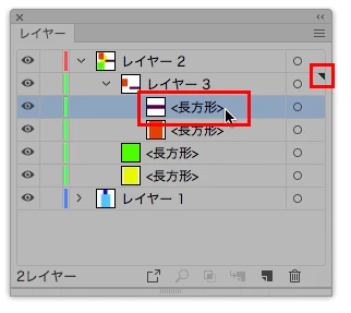 レイヤーパネル で、レイヤー をクリックすると右上に三角マークがつくものとつかないものがありますが、あれはどういう意味なのでしょうか?