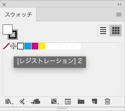 とかになっているケースがあります。レジストレーションカラーが"[レジストレーション]1"の書類にレジストレーションカラーが"[レジストレーション]"のアートワークをペーストしたりすると"[レジストレーション]"はCMYK100%のスウォッチとして登録されたりします。