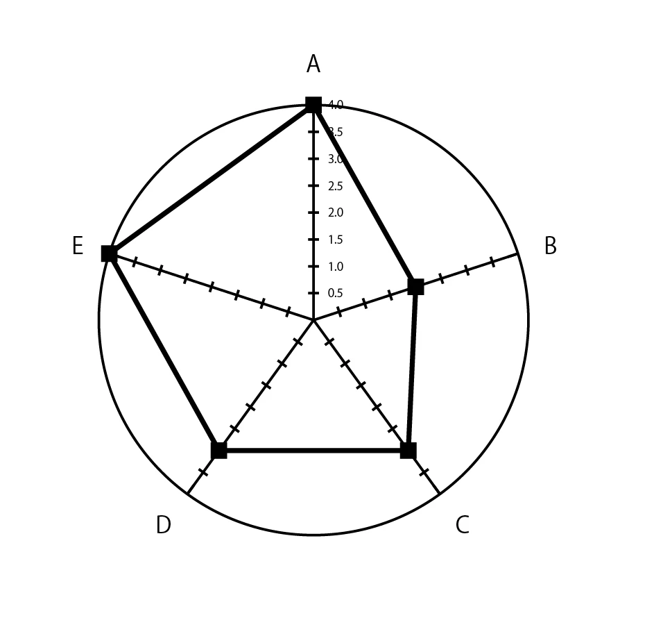 5項目の中で最も高いスコアが4の場合、外周のスコアは自然と4に設定されてしまいます。