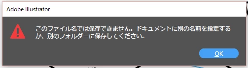 「このファイル名では保存できません。ドキュメントに別に名前を指定するか、別のフォルダに保存してください。」