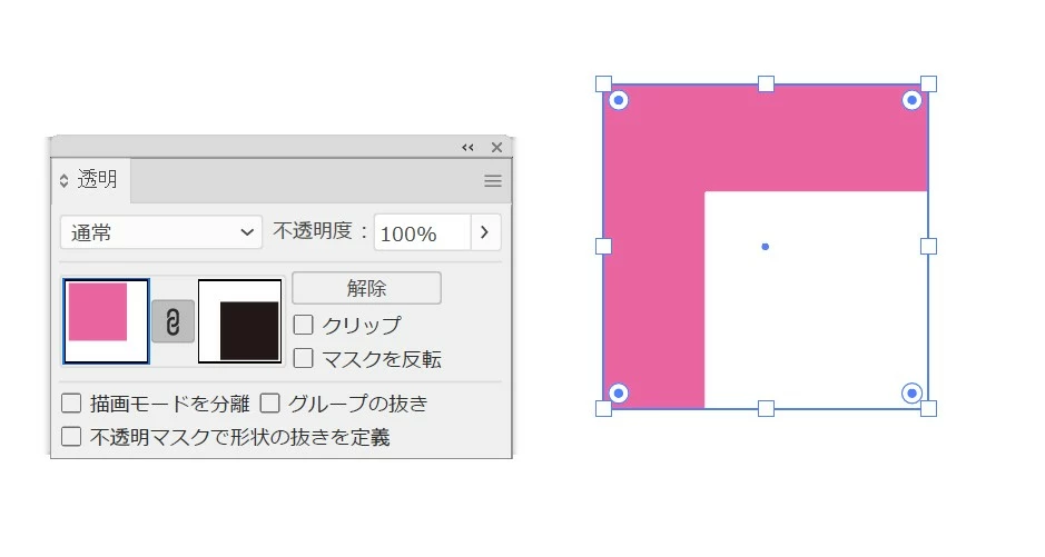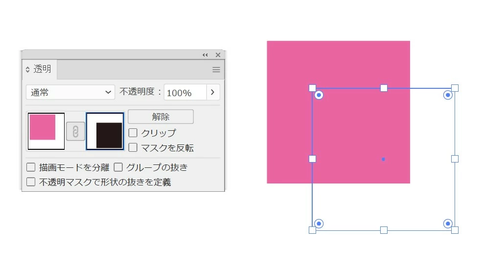 ↑被マスクオブジェクト(ピンク)を少しでも移動させると表示される(マスクされる)