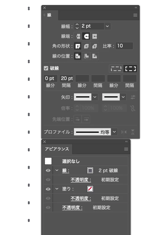 丸の点線が均等にならない