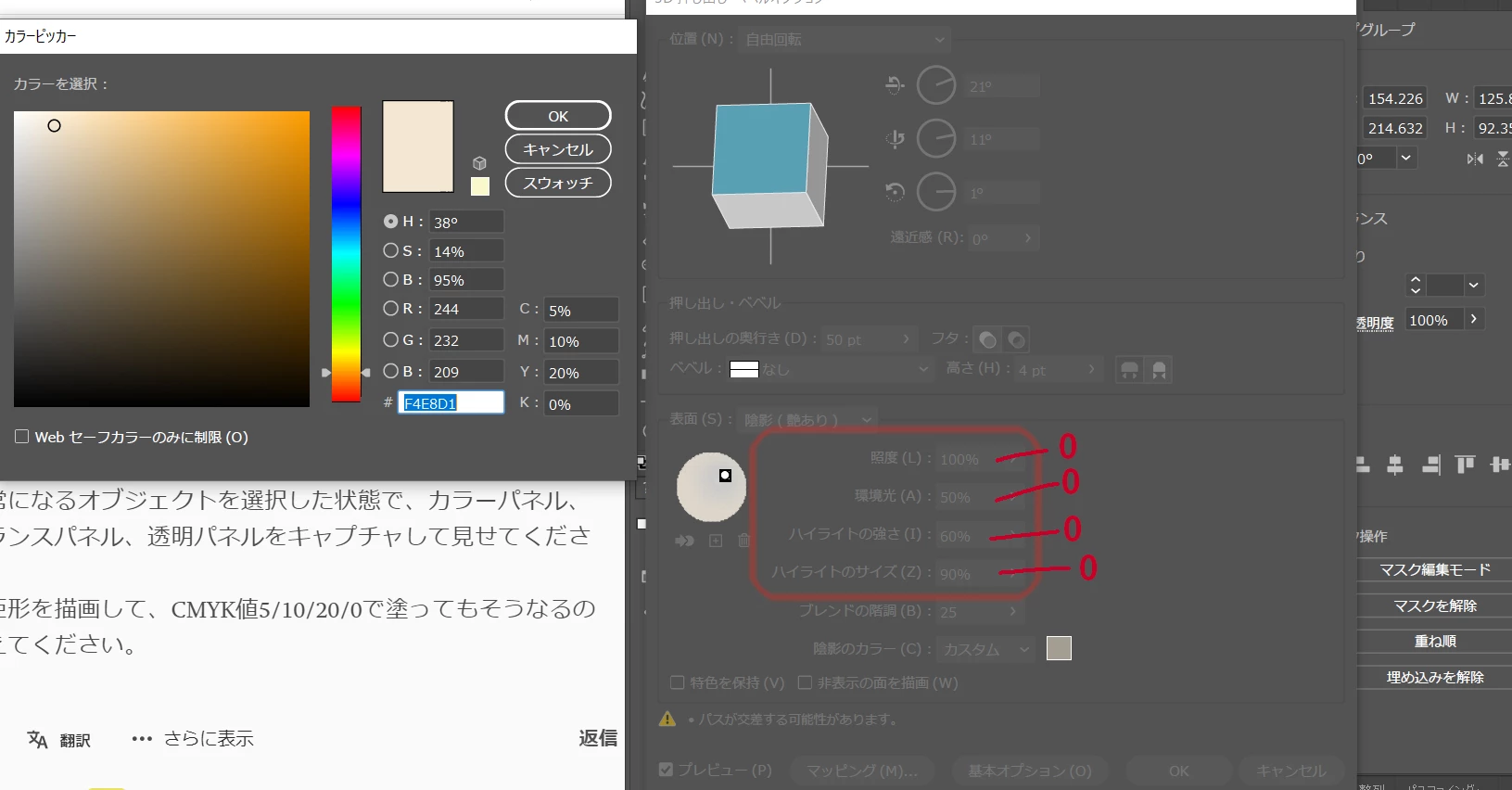左が自分が作っているものですが、写真の下の部分まったく同じ使用カラーを使っているばずなのに同じに見えません。今までもこうゆうことはあったのですが、どこが間違えているのでしょうか?