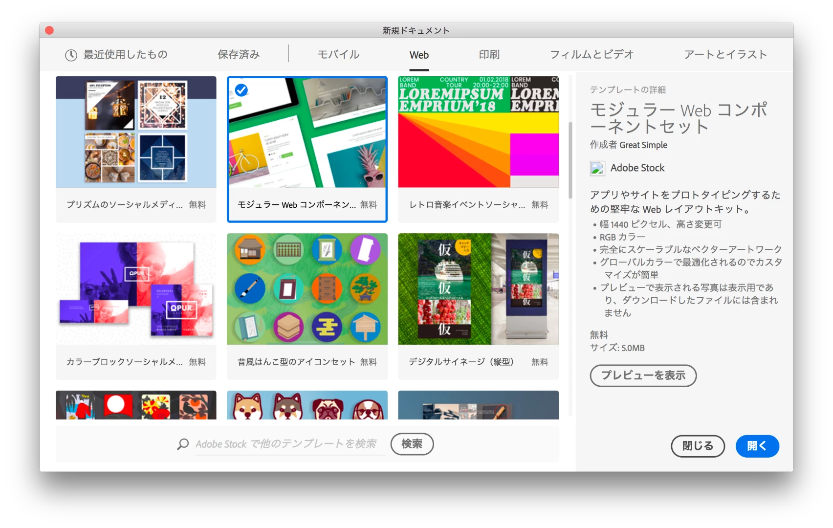 Illustrator の「CC ライブラリ / Stock テンプレート」で選択しゴミ箱をクリックで消えると思います。