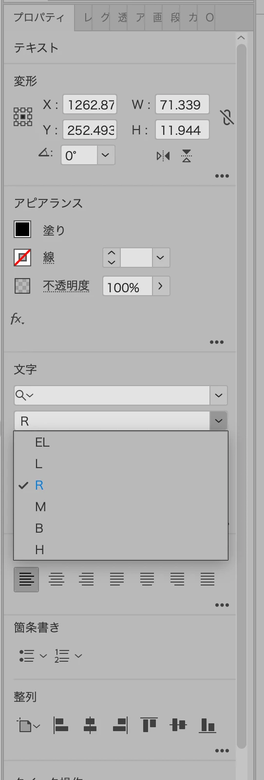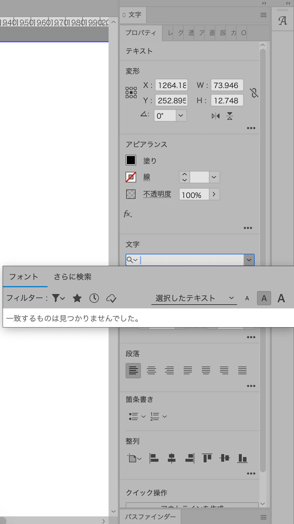 また、プロパティパネルだけではなく、文字パネルのほうでも確認してはどうでしょう。