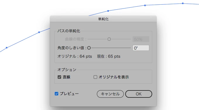 下の画像の様に、ベジェ曲線(またはスプライト曲線)で作成されたアートワークを元の形を可能な限り変えないで直線で構成させたい場合はどうやるのでしょうか?
