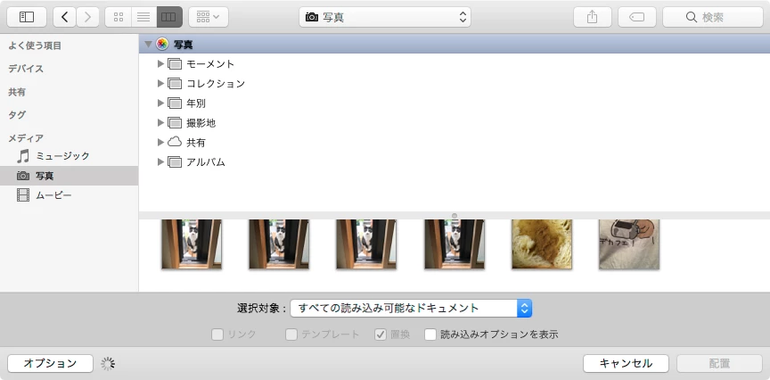 外付けにしてからは、写真ライブラリまでしかいけず、写 真ライブラリ自体を選択して配置を押す、しかできないのです。