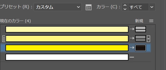 カラーの再配置で行おうとしましたが、グラデーションを拡張したオブジェクトで%のバリエーションが多く一つ一つ設定するのは至難の業となってしまいます。