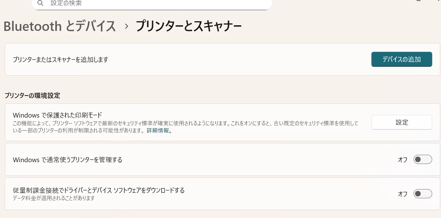 印刷設定が原因かと思い、イラレのホーム画面でプリンター設定を見たいのですが押せない状態(グレー)です。