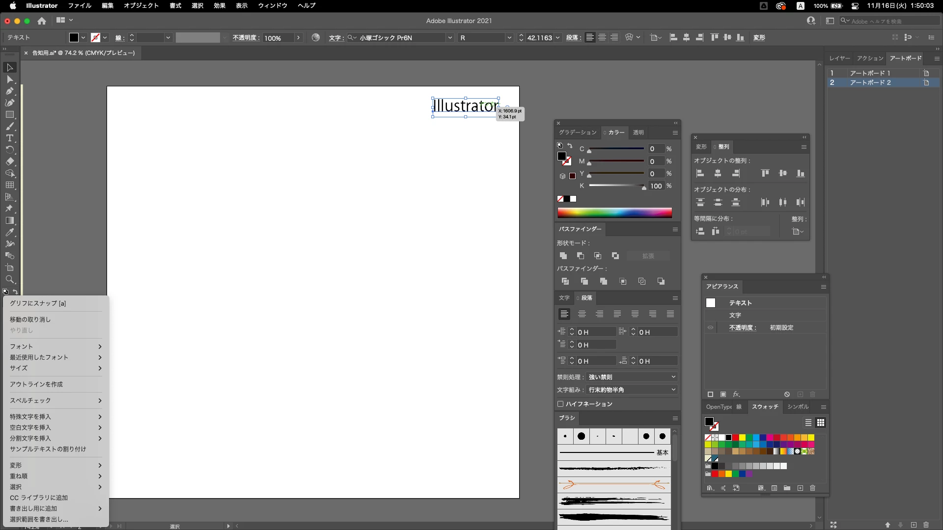 macのOSをアップデートした結果、イラレの右クリックで出るメニューの位置がクリックした位置ではなく、