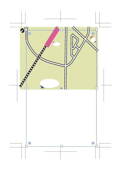 トリムマーク、ガイド線を使い、地図画像を名刺の半分のサイズに配置しました。