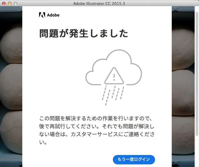 illustratorにログインするために文字を打ち込もうとすると、「問題が発生しました」というエラーが出ます。