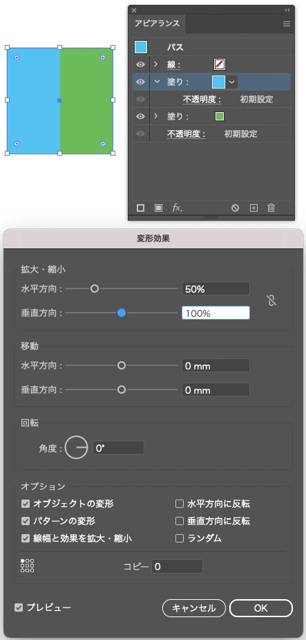 ・2つの正方形を同時に選択