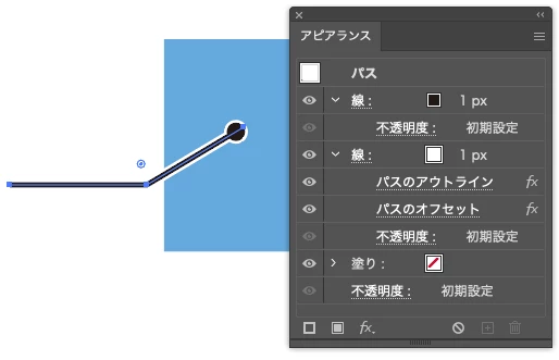 白背景であれば白フチは「線」を重ねるのがよいと思います。アピアランスパネルを使います。線を複製して下側の「線」の線幅と色を変更し,ベタ丸の大きさを(目視で)小さくする,という感じでしょうか。